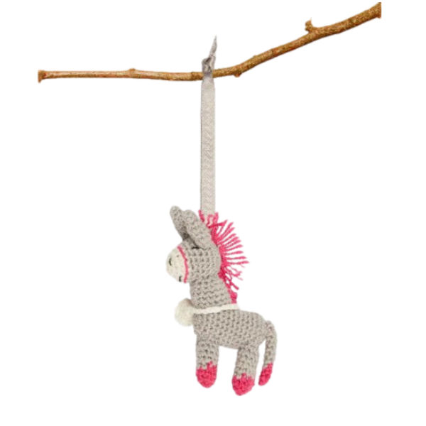 Crafted by refugees from East Africa living in Egypt. This crochet donkey celebrates the importance of steadfast company on difficult journeys. Historically, the donkey has been a travelling companion for those forced to flee.